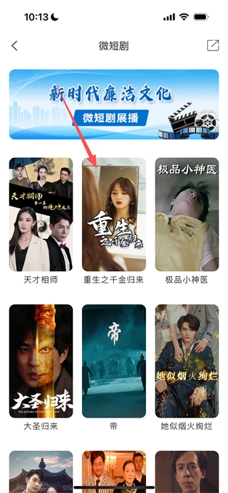 2、在微短剧列表页面找到想要观看的目标短剧,点击进入该剧的播放页面。