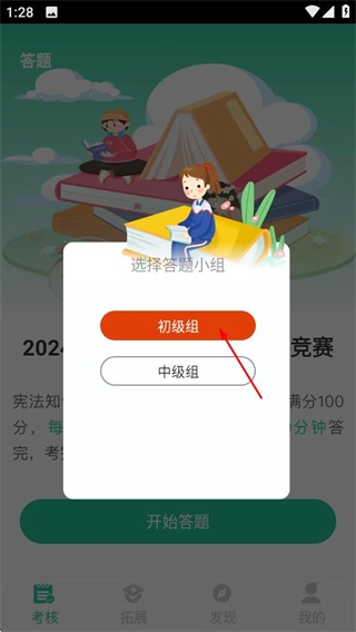 2、在弹出的小组选择框里,挑选对应的答题小组,比如初级组。