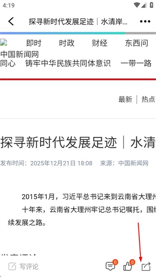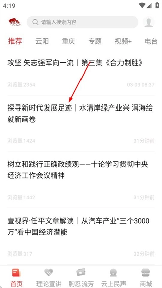 1、在理响云阳的首页挑选目标新闻,随后进入该新闻的详情页面。
