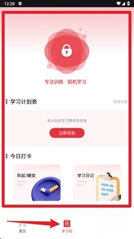 在“学习吧”板块里,您能制定学习规划表,启用专注锁屏学习功能,还可记录每日学习打卡的状况。