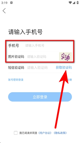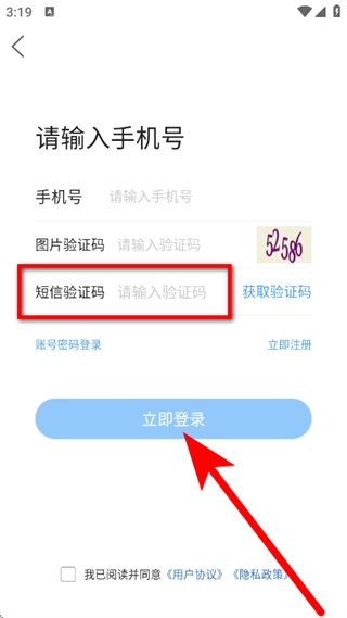 4、在输入框输入验证码,勾选后,点击立即登录,完成登录。