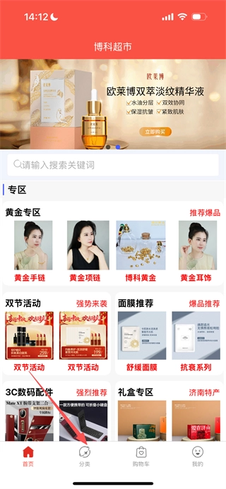 1、在博科超市首页点击底部的分类选项,即可进入产品分类页面。