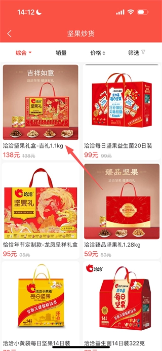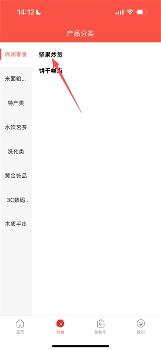 2、在分类页面挑选目标类别(例如坚果炒货),随后进入对应的商品列表页面。
