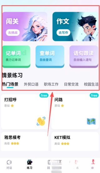 2.平台精心打造了多元的学习板块,涵盖闯关挑战与作文写作这两大核心功能。不管是想从基础日常问候入手的新手,还是需要攻克雅思高级模考的备考人士,都能找到契合自身当前水平的练习内容,逐步进阶提升口语能力。