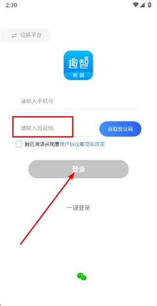 3、在验证码输入框内填入收到的验证码,随后点击登录按钮,即可完成账号的登录流程。