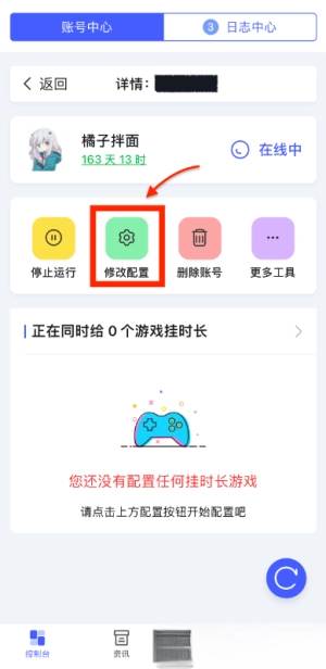 2. 点击账号查看详情,接着点击“修改配置”按钮进入配置页面。