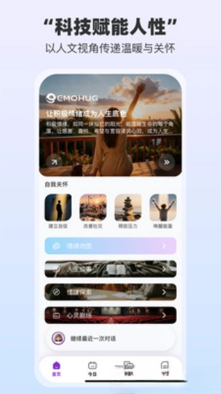 Emohug是一个可以通过智能AI来提供虚拟陪伴的智能聊天互动安卓手机软件,让情绪失落且压力烦躁的用户可以通过深度聊天来放松自身的心理状态。除此之外软件也支持文字与语音双模式互动,语音反馈自然流畅,提升陪伴真实度。