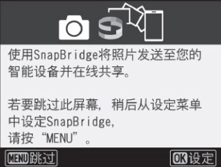 在本站完成尼康SnapBridge软件的安装并打开,随后开启智能设备的蓝牙与Wi-Fi功能。需要注意的是,与照相机的实际连接需通过SnapBridge应用程序来操作;请不要尝试利用设备自带的设置应用程序进行连接。