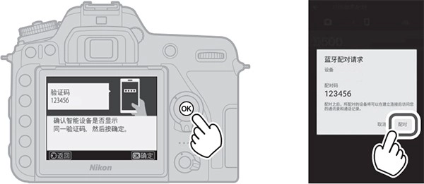 4、确认完成后,最后按下相机上的ok键,再点击手机上的配对按钮就可以了。