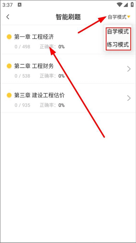 6、为用户提供了自学模式、练习模式,在复习的时候可以选择使用;