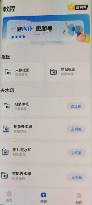 3、在教程页面中有抠图以及去水印的功能,体验不同的抠图操作教学;