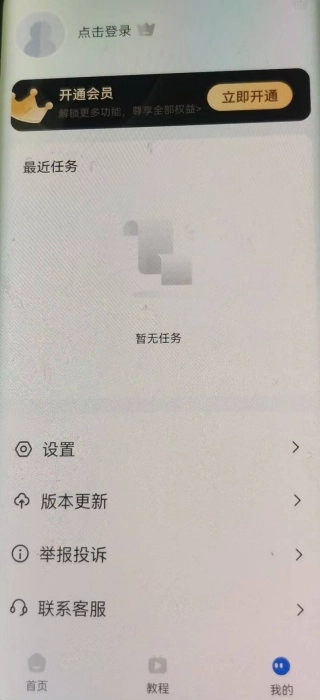 3、在我的页面中可以开通会员,同时了解最近任务等信息。