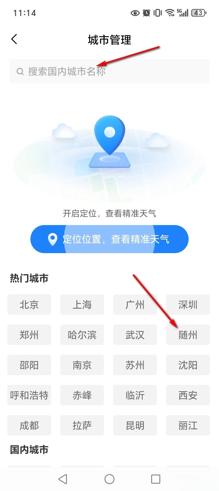 搜索或者直接选择城市