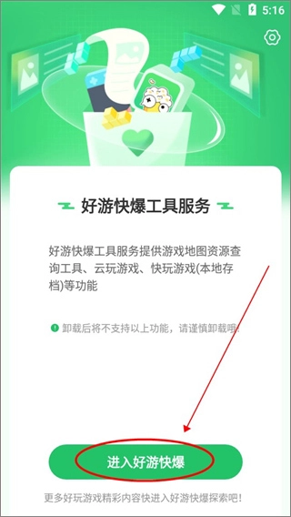 1、进入快爆工具服务后,直接点击“进入好游快爆”;