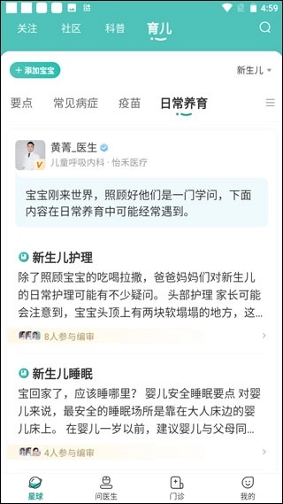 2、来到了主页面,这里是刚出生的宝宝专区,里面是医生建议。