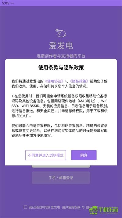 1、先打开对应的软件,进入软件界面后会弹出使用条款,点击同意即可进入下一步。