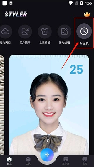 1、首先在本站下载软件,随后打开软件,在首页的上方找到“时光机”这一功能