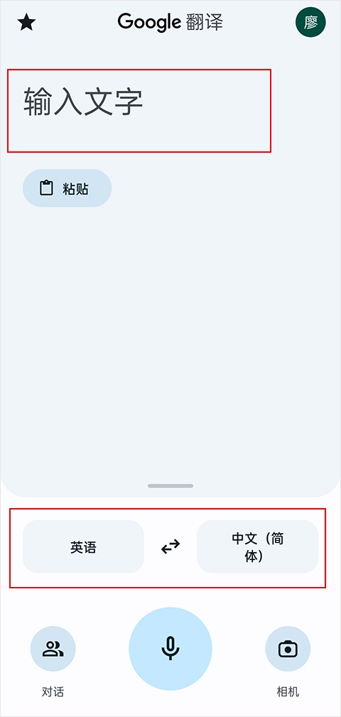 1、第一步是打开谷歌翻译在线工具,输入需要翻译的内容,接着在下方选择对应的语言转换选项;