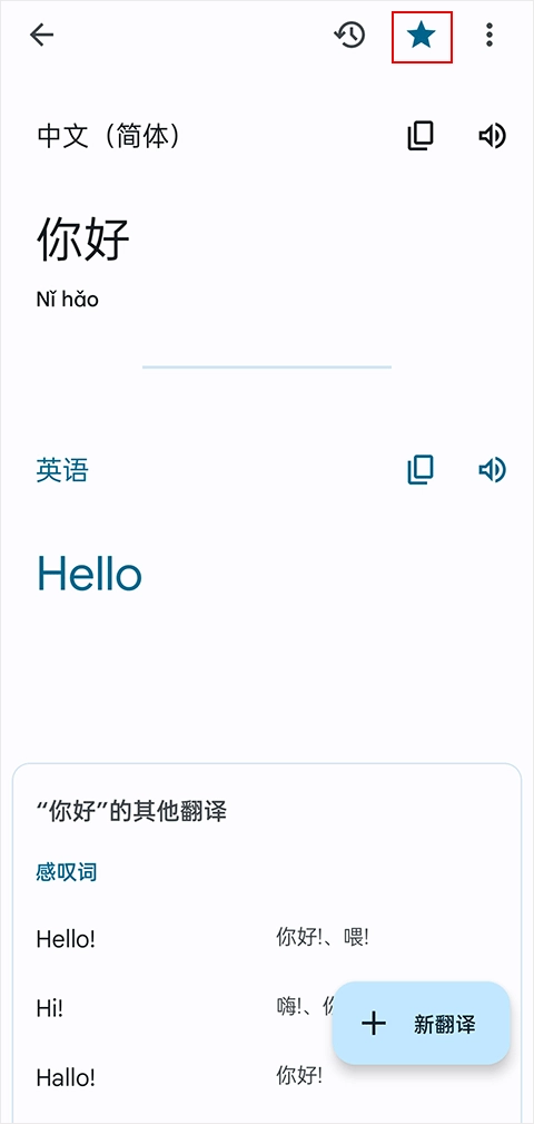4、翻译收藏功能:点击星标即可收藏翻译内容,方便日后随时查阅(不限制语言种类)