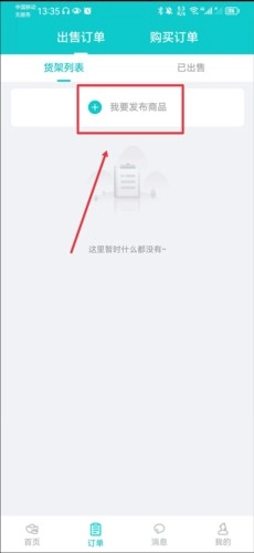 1、进入聚宝斋后,在订单界面的货架列表里点击“我要发布商品”按钮