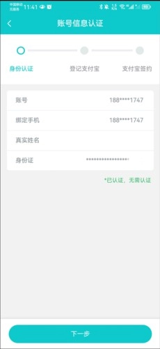 2、根据步骤完成账号信息认证