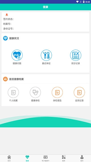 切换到【健康】页面,还可以查看自身的各类健康相关内容,比如健康状况、居民健康档案等信息。