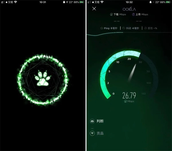 然后,测速一次,这个时候界面就是新主题样式,变成绿色的猫爪风格。