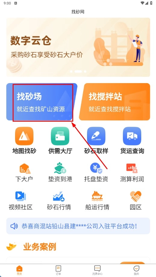 点击【找砂场-功能按钮】,进入找砂场页面。