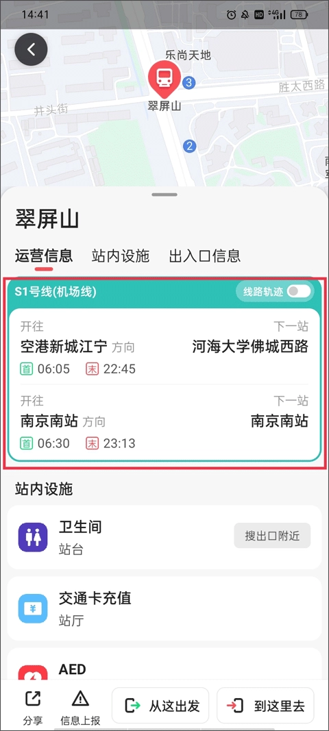 选好起点与终点后,就能查看详细的运营信息、站内设施以及出入口信息了。