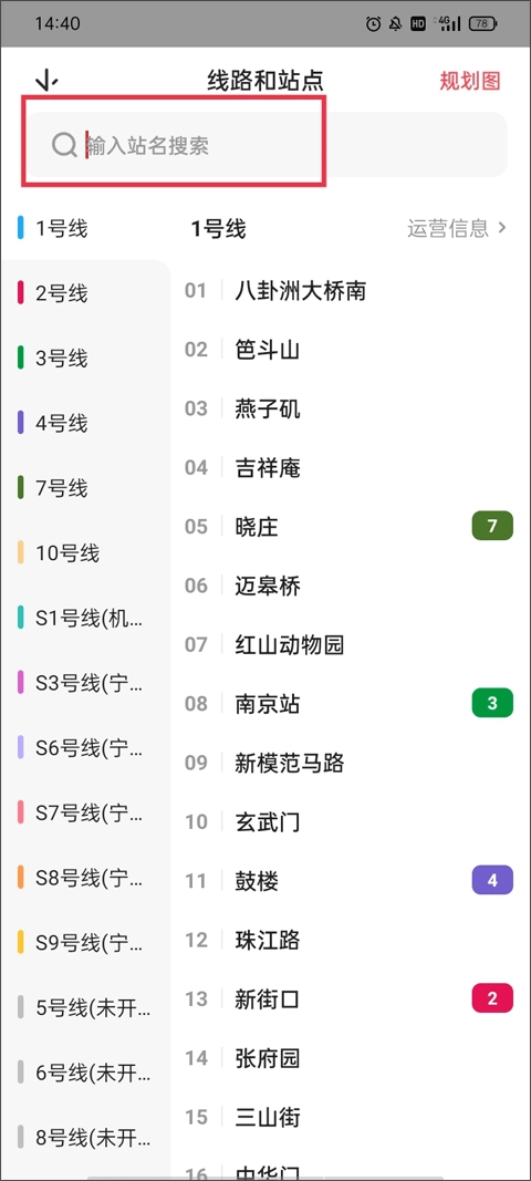 点击搜索按钮,把所有地铁站名称按字母顺序排好,再挑选出你需要的站点。