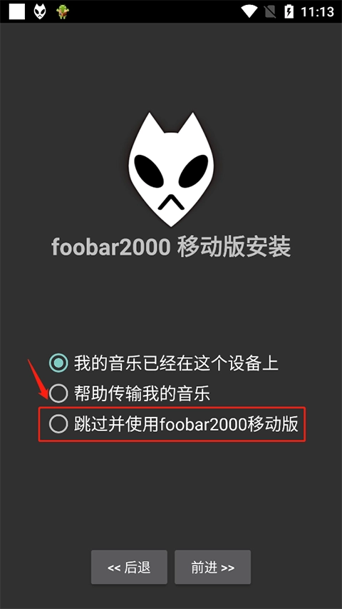 1、在这里你可以选择“跳过并使用foobar2000移动版”。