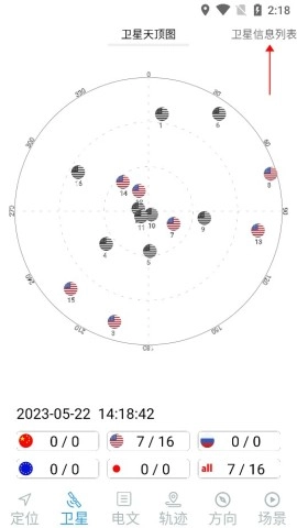 2、您能够在软件里查看卫星的分布状况,若想进一步了解,只需点击卫星信息列表即可。