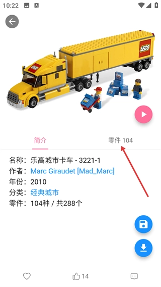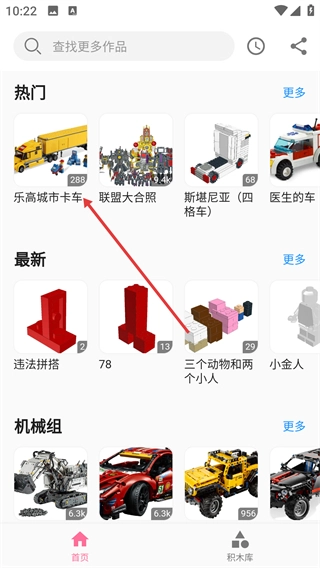 在首页的“热门”板块中,点击你想要查看的目标作品(例如【乐高城市卡车】),这样就能进入到该乐高作品对应的详情页面了。