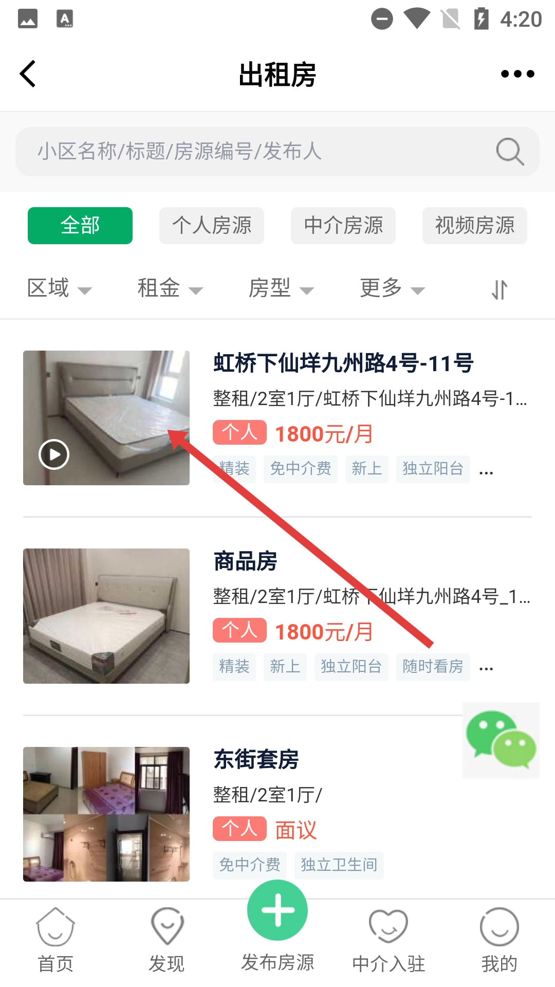 在房乐清页面点击【出租房】选项,进入出租房列表页面后,就能依据区域、租金、房型等条件对房源进行筛选。