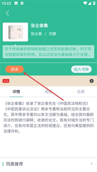 在书籍详情页面点击【阅读】按钮,就能进入该书的阅读界面,进而查看书籍内容。