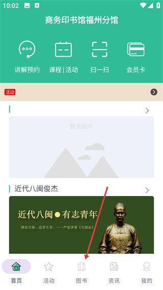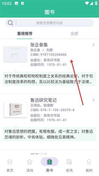 在主界面找到底部的【图书】选项并点击,就能进入图书资源页面,查看推荐的书籍列表。