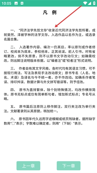 在阅读界面,你可以借助【上一章】和【下一章】按钮来切换章节内容,从而浏览完整的书籍。