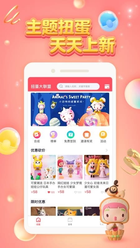 扭蛋大联盟是一款专注于扭蛋的社区类软件,这里汇聚了海量趣味十足的日版扭蛋与手办玩具,品类覆盖极为全面,任你随心挑选扭玩;各类主题扭蛋内容可随时浏览查看,平台还会每日上新不同扭蛋,让你轻松实现公仔玩具的持续选购。在线上,你能浏览到带有优惠砍价活动的商品,一键下单即可将高性价比好物收入囊中;限时优惠专场更是不容错过,能让你快速抢购心仪公仔,以优惠价格购买变得更加便捷。 不仅如此,扭蛋大联盟还为用户打造了超真实的体验感。你可以在线上参与扭蛋游戏,解锁更多意想不到的惊喜;扭蛋过程中会伴有背景音乐,让你在休闲氛围里感受刺激的游戏乐趣,说不定还能收获满满好运。扭蛋中奖后可尽情畅玩,全民一同参与扭蛋游戏,个人榜单战绩也会全面呈现,快来加入我们一起扭蛋吧!
