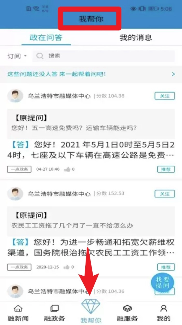 你可以先打开红城1947 App,接着点击底部导航栏里的「我帮你」选项,这样就能进入政务问答平台了。之后找到页面右上角的“我要提问”按钮并点击,按照提示填写好你想咨询的问题,最后提交上去耐心等待回复就可以啦。