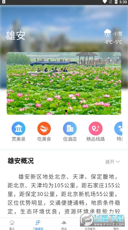 雄安文旅是一款专为大家打造的雄安旅游类软件,用户可以通过它了解雄安的风景名胜、特色美食等信息。借助智能化系统,用户在旅行前、旅行中及旅行后都能获得良好体验,有需要的话就使用雄安文旅吧。