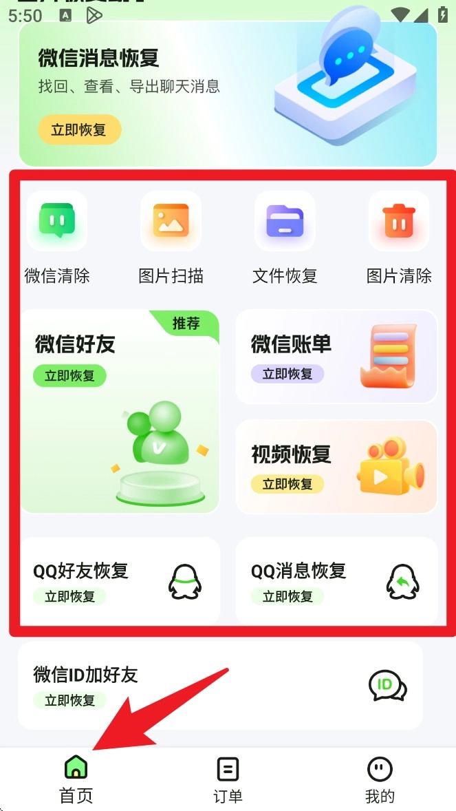 点击底部导航栏的「订单」选项,就能查看当前以及过往的恢复订单记录,便于后续进行跟进或重试操作。