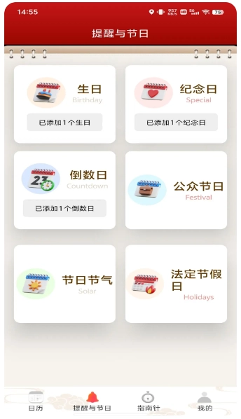 软件中可以添加各种重要日期,软件会自动提醒。