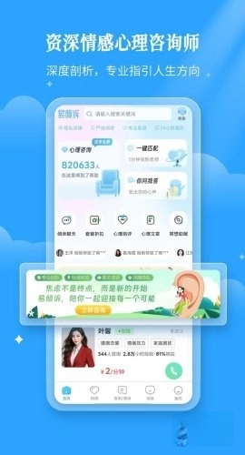 易倾诉作为线上心理咨询平台,配备专业心理咨询服务,支持用户随时查看;平台从多维度出发,提供丰富解决方案,点击即可直接分析了解,助力实现更优质的健康服务;用户随时在线就能诉说心事,平台致力于打造舒适的聊天体验。
