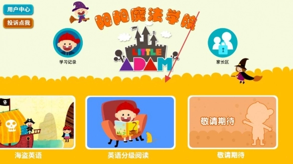 2、从童趣界面切换到主页面后,学习记录、家长区等功能一目了然,海盗英语、英语分级阅读等课程板块整齐排列,点击感兴趣的课程,就能进入对应的专属学习空间。
