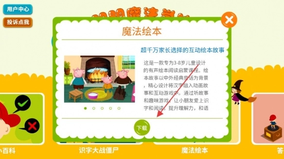 3、若想体验魔法绘本,可在主页面找到魔法绘本板块,浏览超千万家长选用的互动绘本故事介绍,知悉课程特色后点击,即可获取趣味绘本资源。