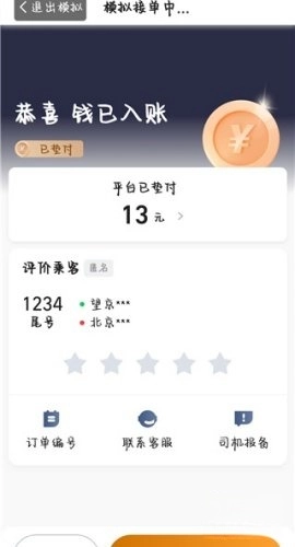 4、用户还可以进入“我的”页面,点击“模拟接单”,体验手机接单流程。