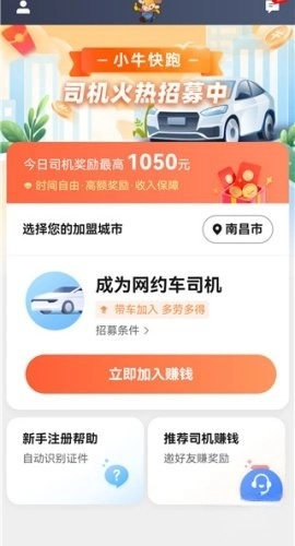 2、进入软件首页后,点击“立即加入赚钱”即可注册成为司机。