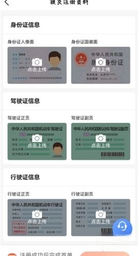 3、用户只需根据平台要求上传身份证、驾驶证、行驶证等资料即可。