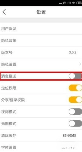 3、最后,在【设置】页面里,找到【消息推送】选项右侧的按钮,点击它把这个功能关闭。