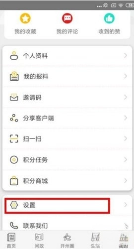 2、在【我的】页面中,选择【设置】选项。